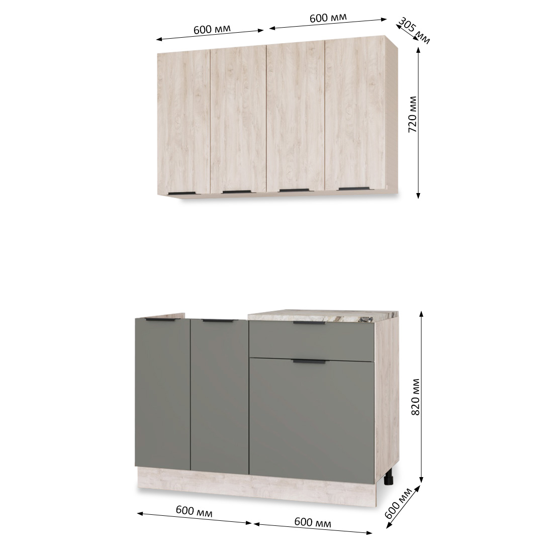 Этот гарнитур подойдет как для компактной кухни, так и для просторного помещения, создавая удобное и эстетичное рабочее пространство.