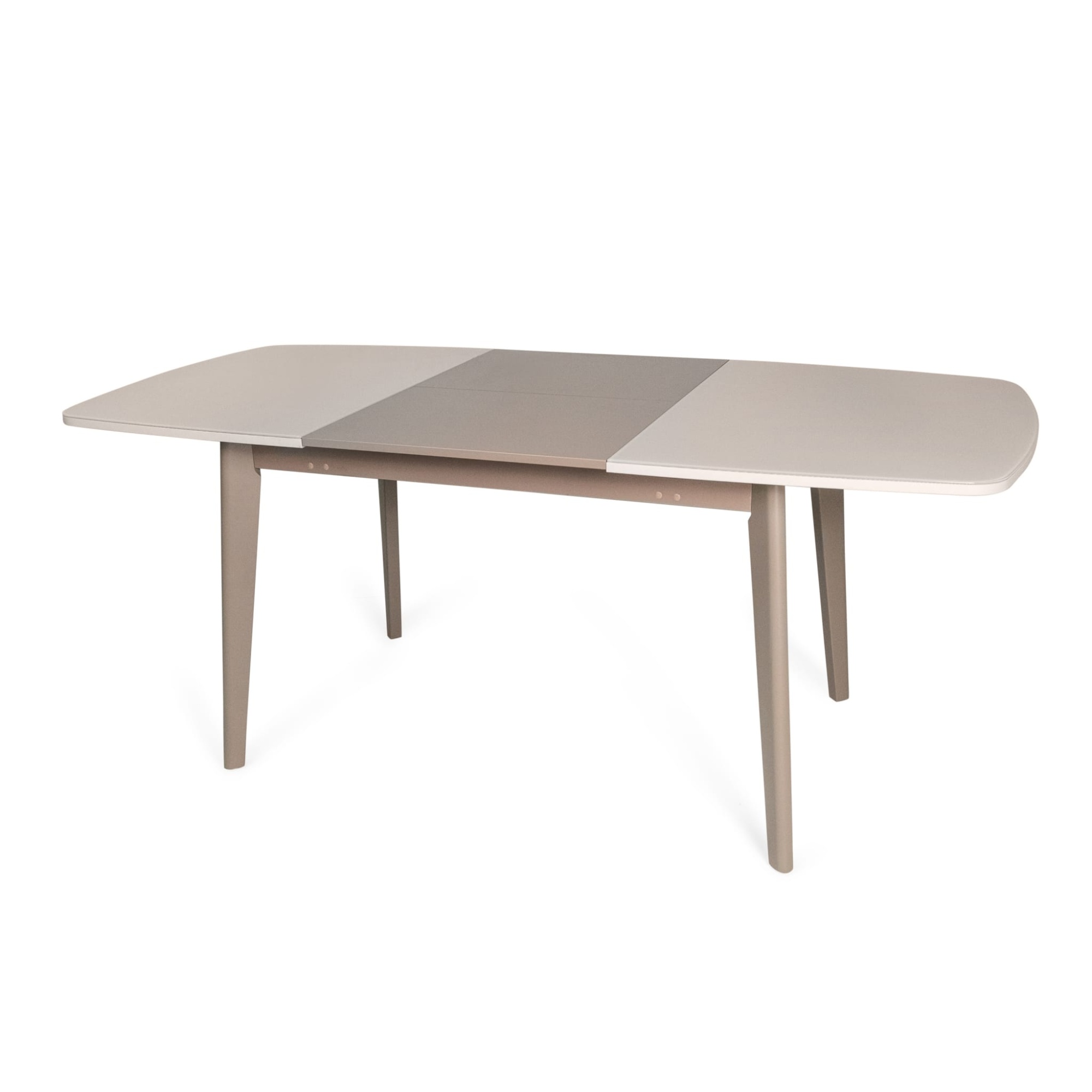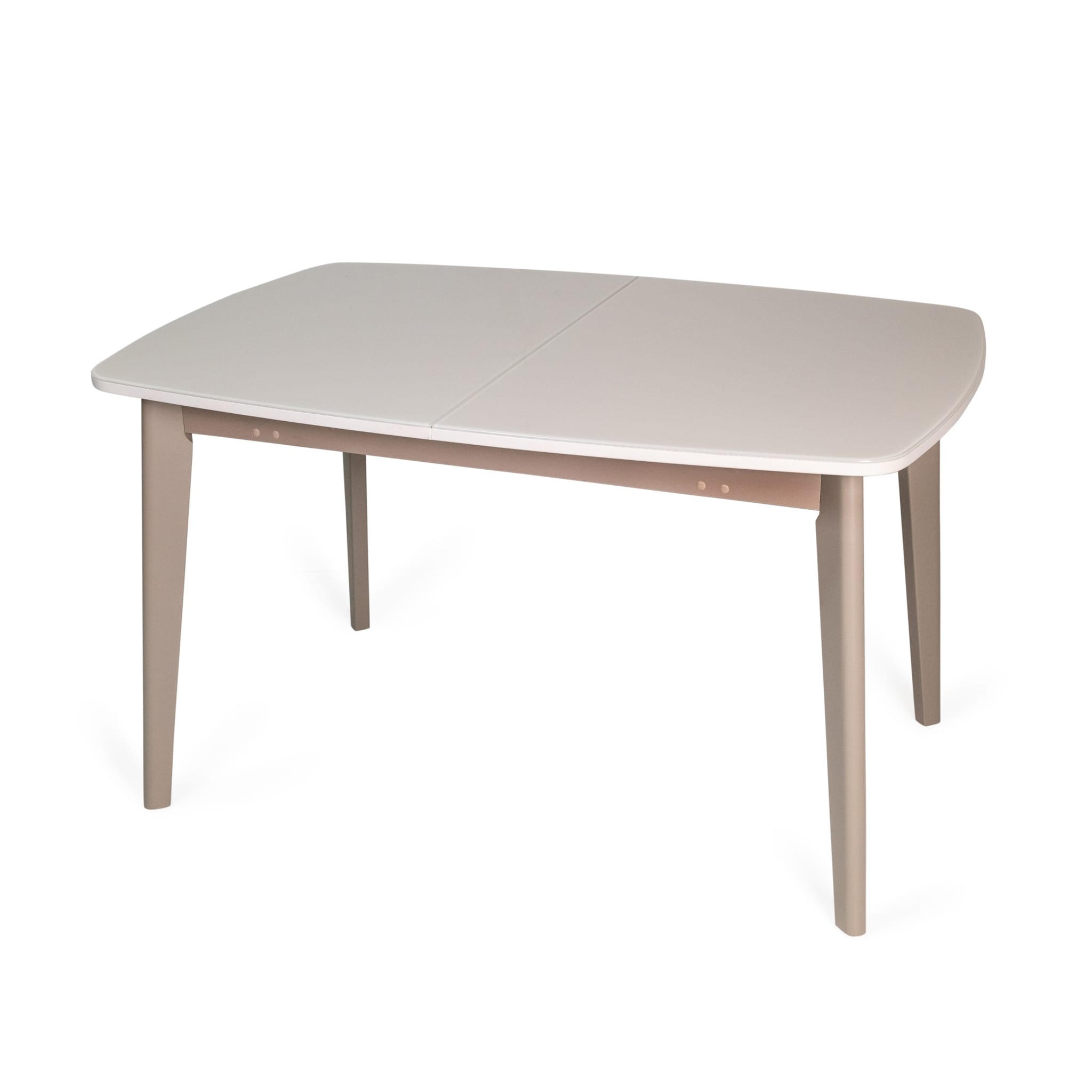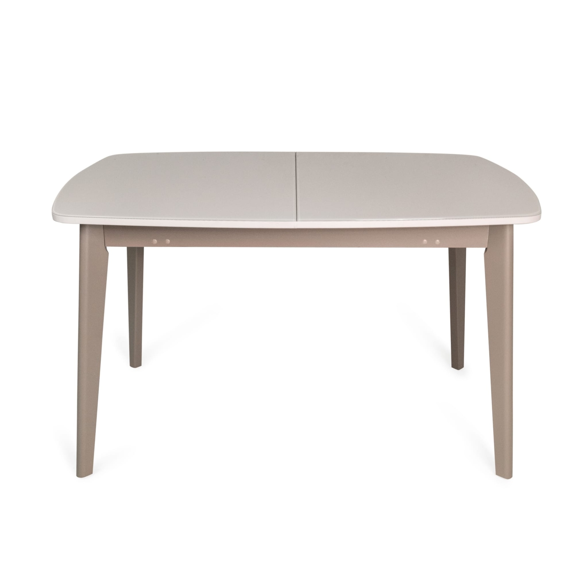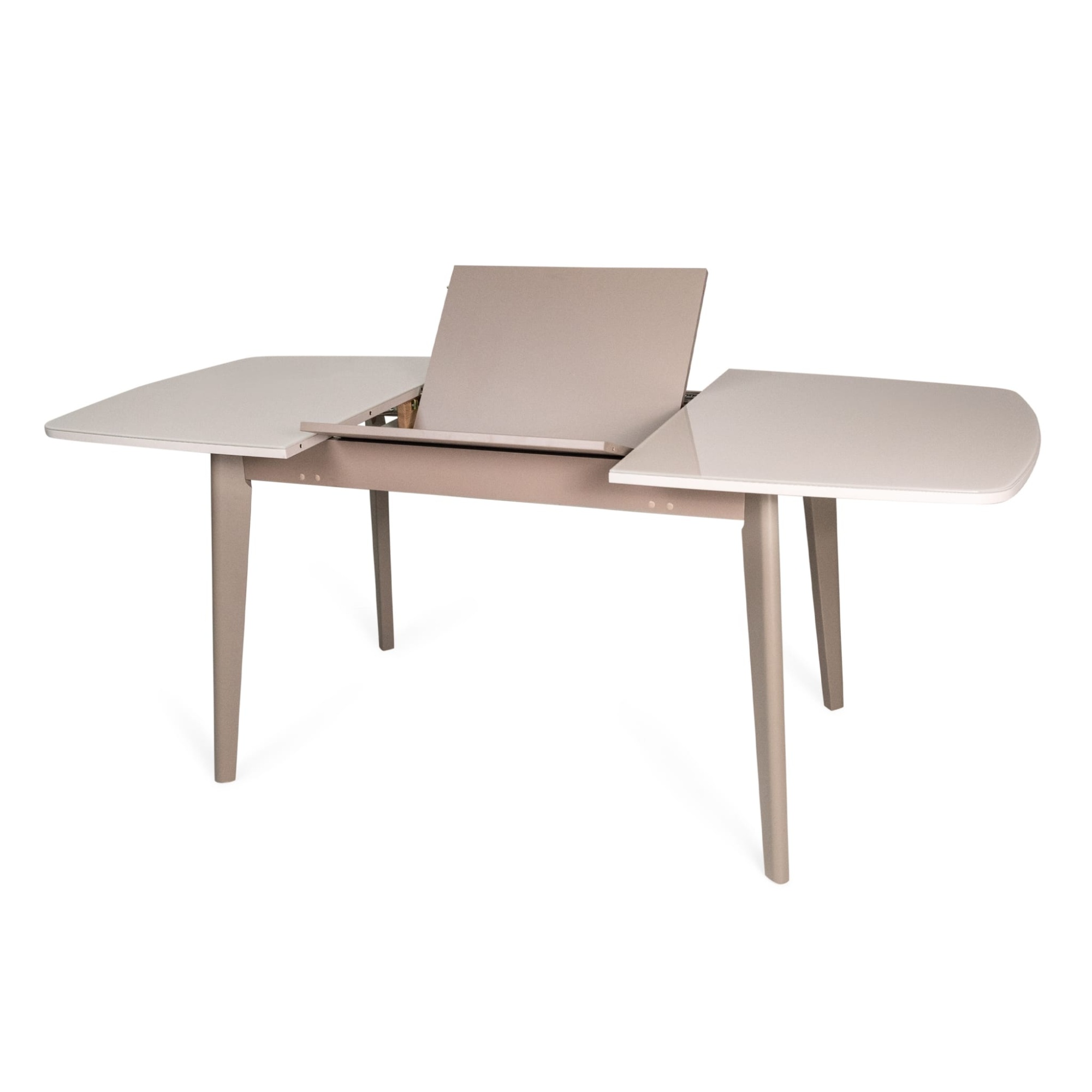 Стол полуовальной формы со стеклянной поверхностью – отличное решение для современных интерьеров. Скругленная форма углов эргономична для пространства дома, а отражающая поверхность поможет гармонично вписаться в интерьер и добавит больше света. Материал столешницы из ЛДСП + стекло, цвет – белый. Благодаря механизму трансформации стол увеличивается на 550 мм, вставка из ЛДСП белого цвета. Вставка стола хранится внутри.